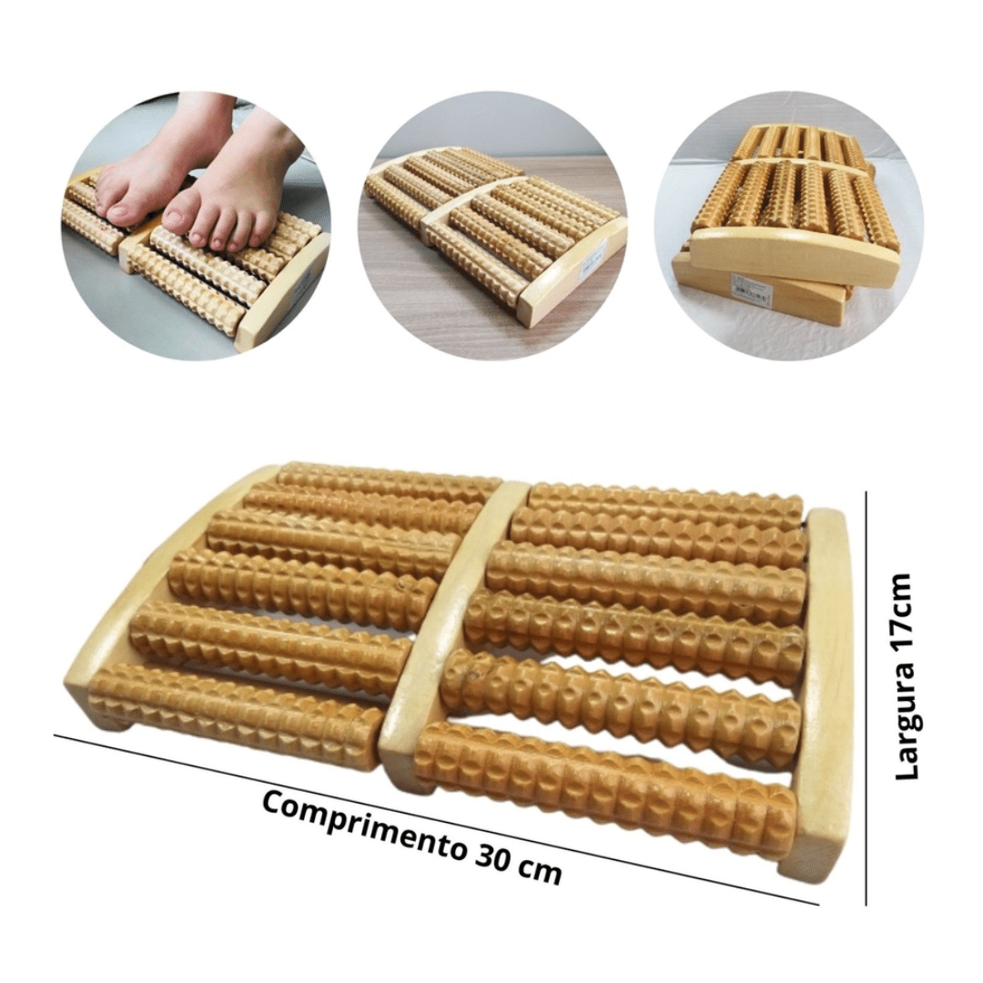 Fabricado em madeira natural resistente, seu design anatômico e ergonômico possui rolos que atingem os principais pontos de pressão, estimulando a circulação e proporcionando uma massagem suave e profunda. É a sua solução prática e ecológica para aliviar a dor e a tensão diária nos pés.